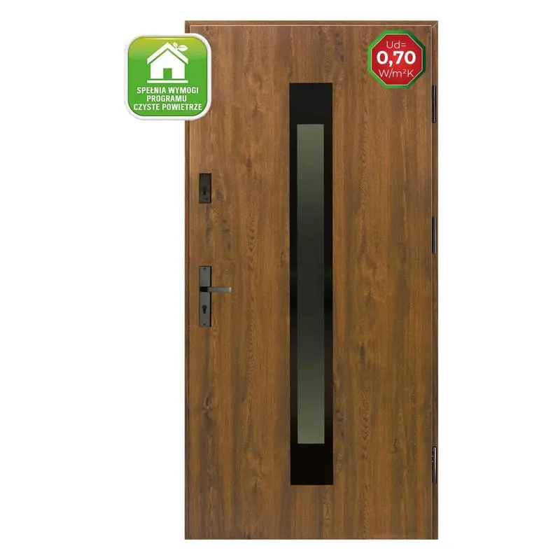 Współczynnik przenikania ciepła (U) odnosi się do zdolności drzwi do zatrzymywania ciepła w pomieszczeniach. Im niższa wartość tego współczynnika, tym lepsza izolacja termiczna, co ma znaczenie zwłaszcza w zimowych miesiącach.
